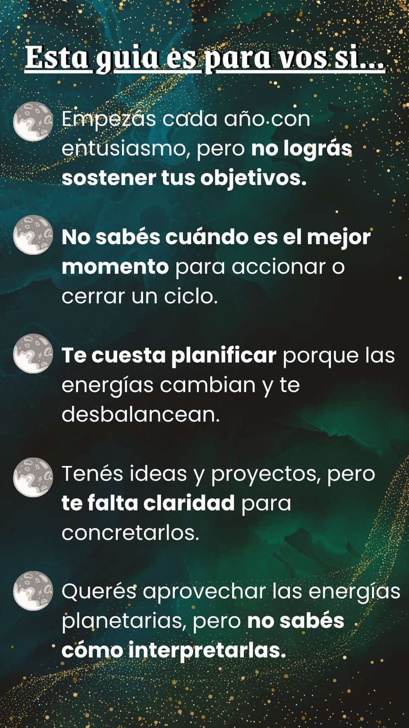 "Aprecio que explique cómo alinear metas con cada tránsito sin abrumar. Es justo lo que necesitaba."