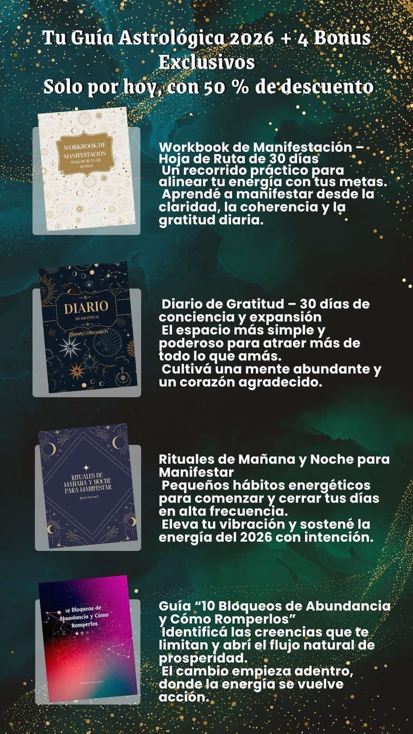"Los bonus me encantan: Workbook de Manifestación para bajar deseos a tierra y el Diario de Gratitud para sostener la energía."